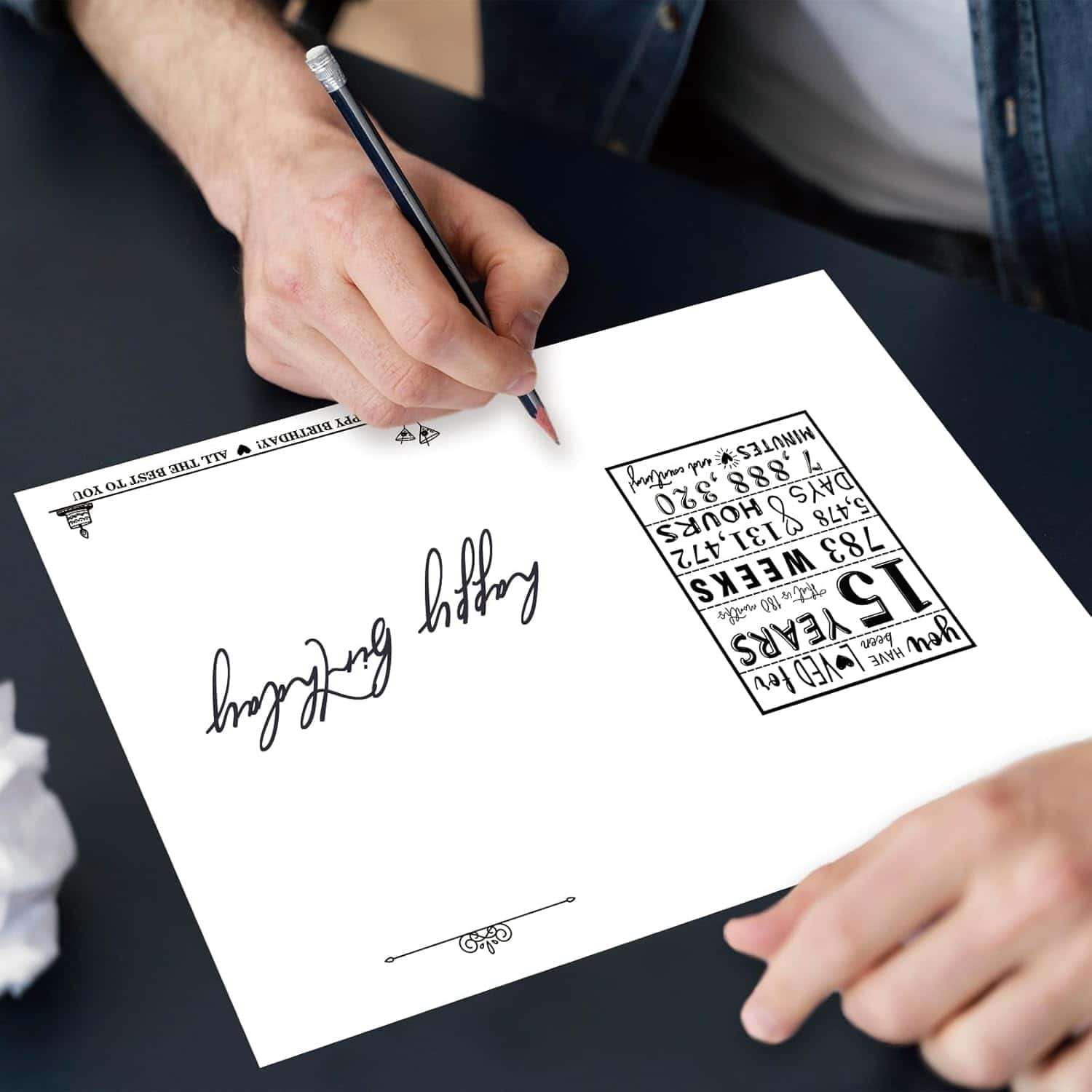 Ah, the joy of turning 15! Imagine holding a card filled with memories that marked the year you were born. This double-sided 15th birthday card is printed using special techniques, presenting unique designs that make it an eye-catching centerpiece for any celebration. With its recycle 300gsm linen cardstock, it delivers a luxurious tactile experience that you can both see and feel as you flip the thick pages.