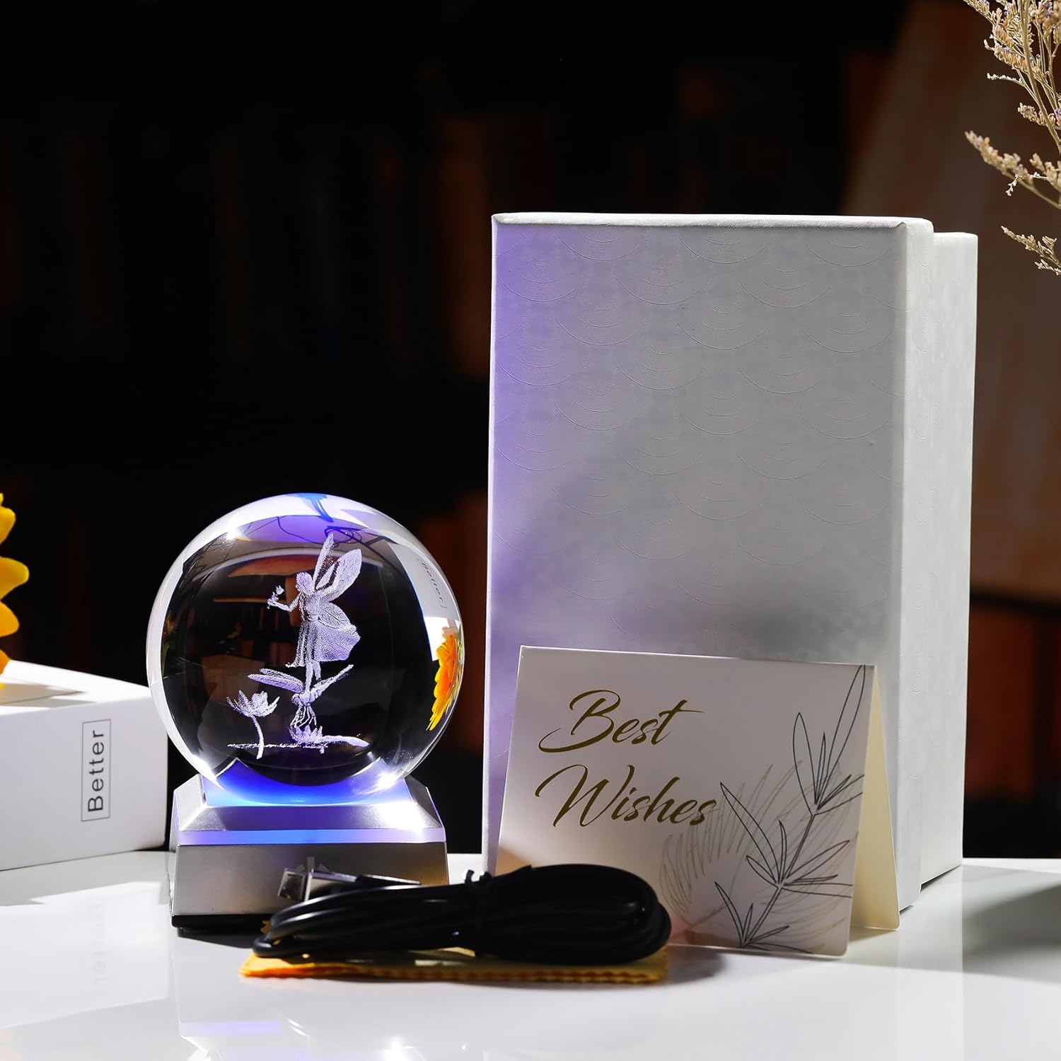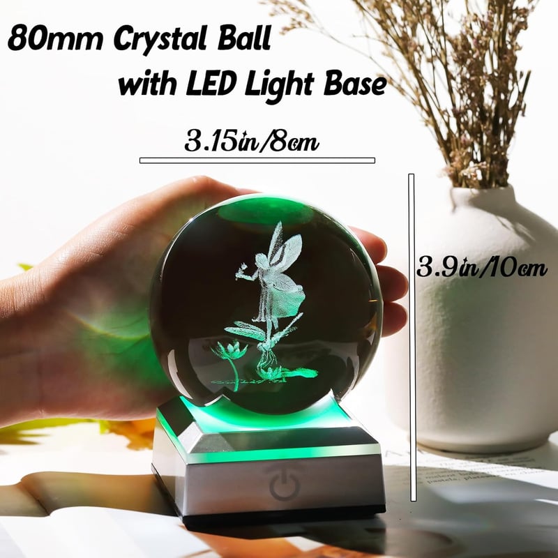 This stunning 3D Engraved Fairy Crystal Ball is a unique and memorable gift that will captivate anyone who appreciates fairy tales or magical decor. Its exquisite design, combined with the LED colorful base, creates a mesmerizing ambiance, making it ideal for adding a touch of elegance to any home setting.