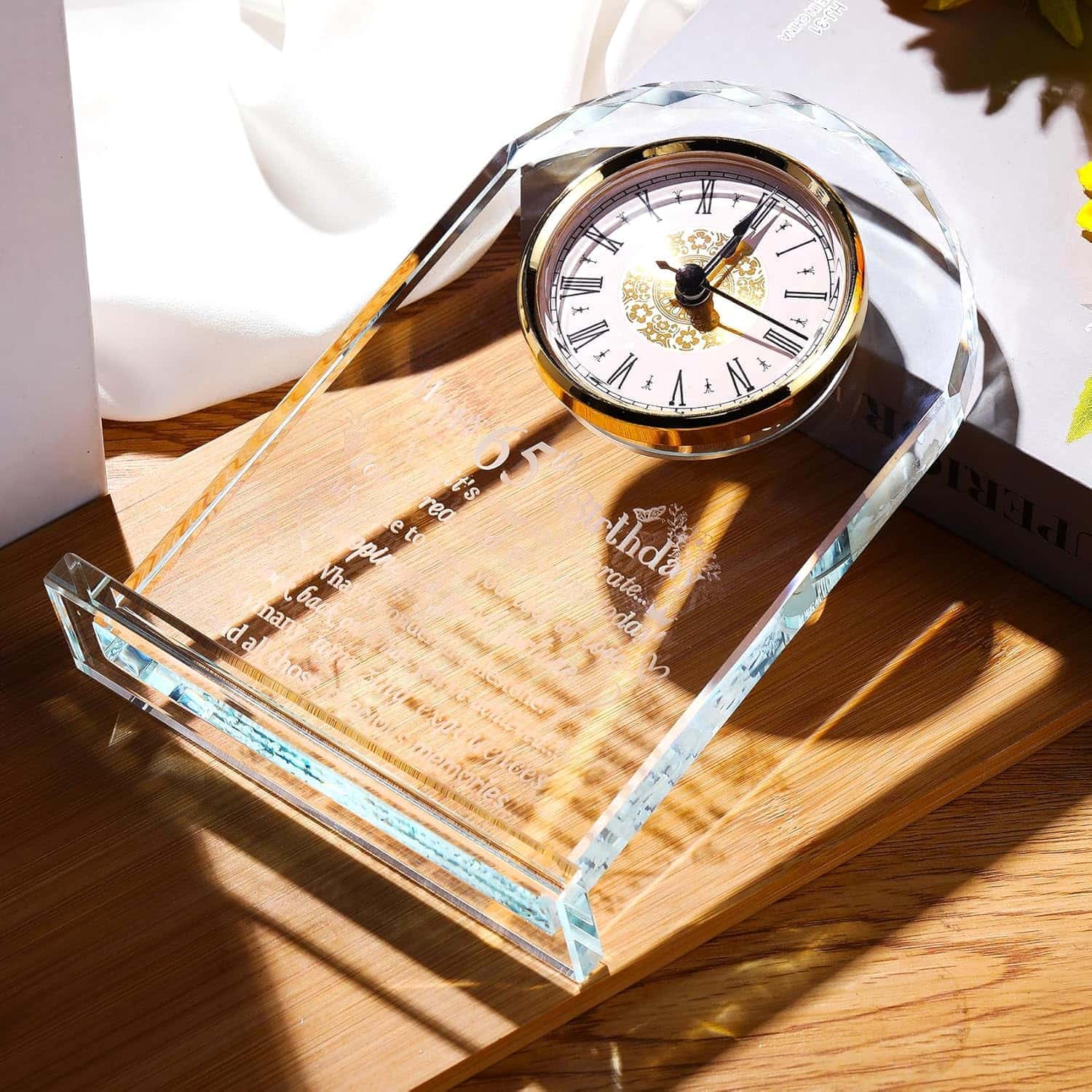 Envision this: your loved ones walk into a room, their eyes catch a glimpse of the dazzling clock standing proudly, and they remember the day they received it from you. This glass keepsake’s unique design and practical use perfectly blend emotional and functional benefits—it’s a daily reminder of love, care, and celebration. Plus, it’s economical too; the quality ensures it lasts through ages, giving them pride and joy every single day.