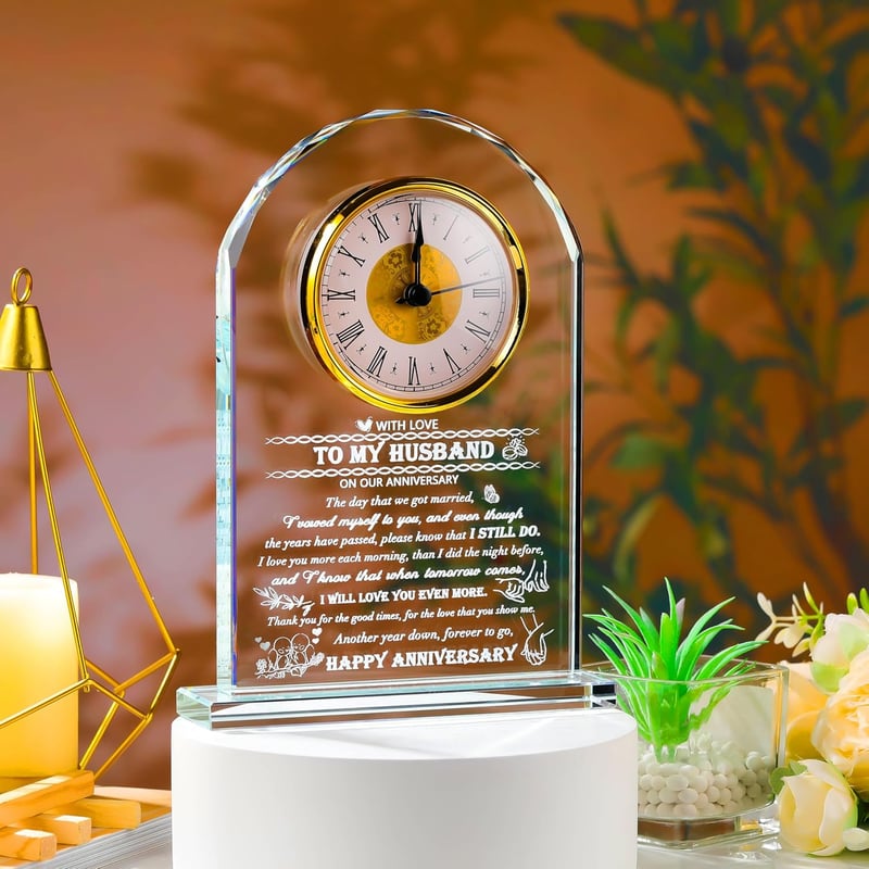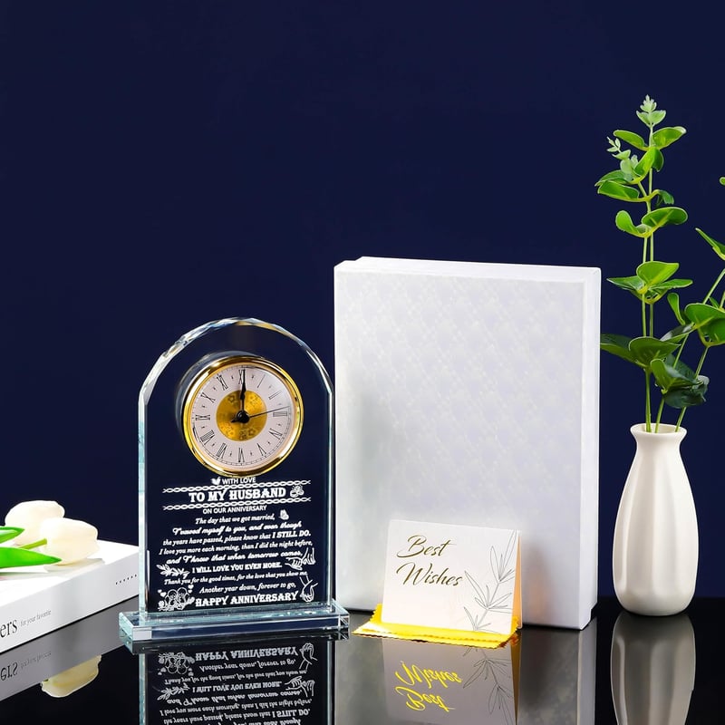 This exquisite crystal clock is a perfect gift choice for celebrating anniversaries, offering elegance and personalization. Its timeless design ensures it will be cherished for years, reminding your husband of your enduring love every time he glances at it, making it a heartwarming present for any special occasion.