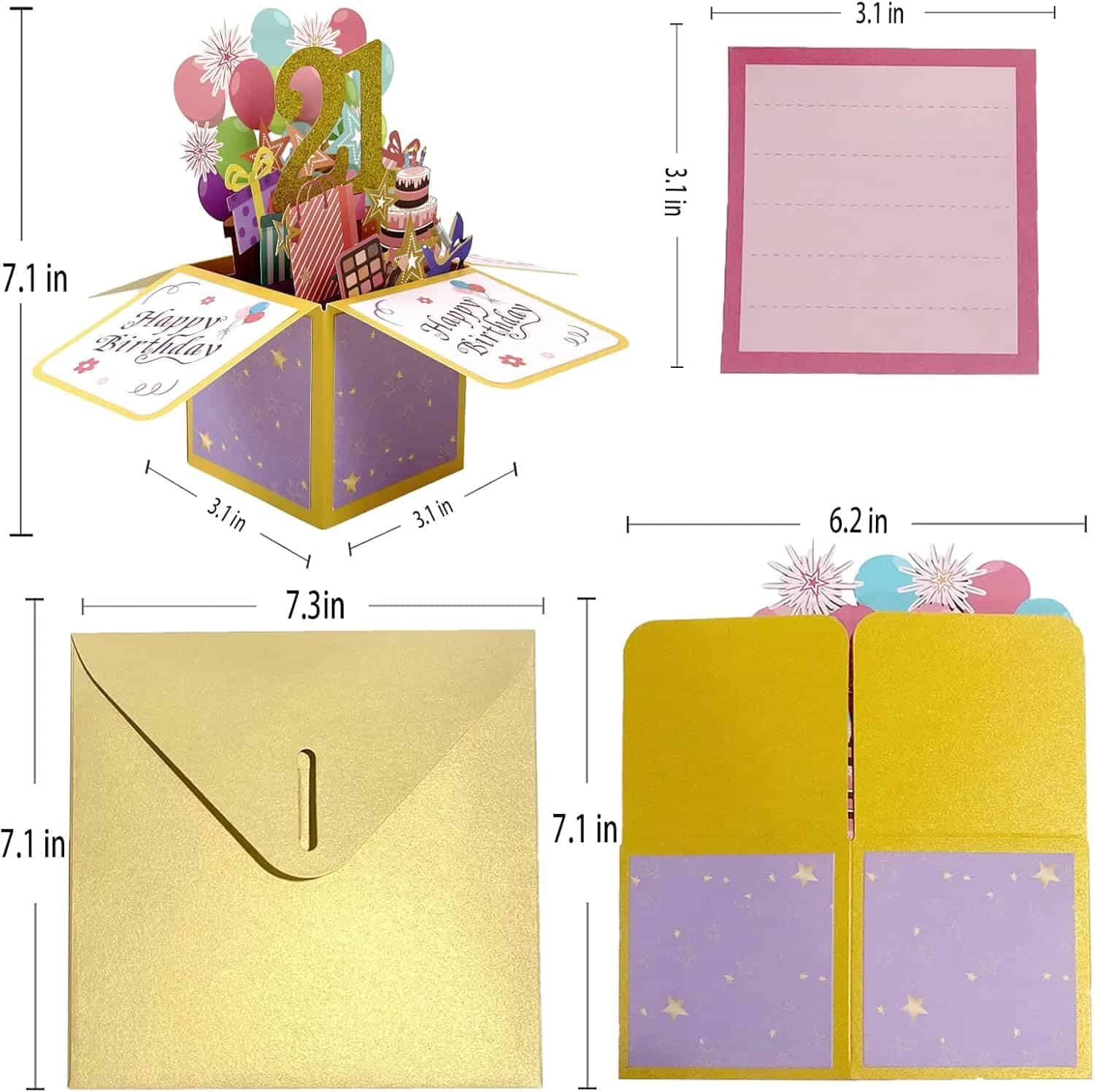Features of the Asmallgf Shiny 21st Birthday Pop Up Card