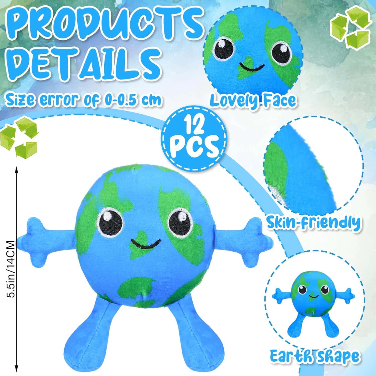 The Meooeck 12 Packs Earth Day Stuffed Plush make an ideal gift for kids, teachers, and environmental enthusiasts. These cute, soft Earth-shaped plush toys are not only fun but also educational, teaching the importance of protecting our planet. They are perfect for Earth Day celebrations, classroom activities, or as rewards. Safe and comfortable, they suit anyone over 6 years old, encouraging awareness and care for the environment in an engaging way.