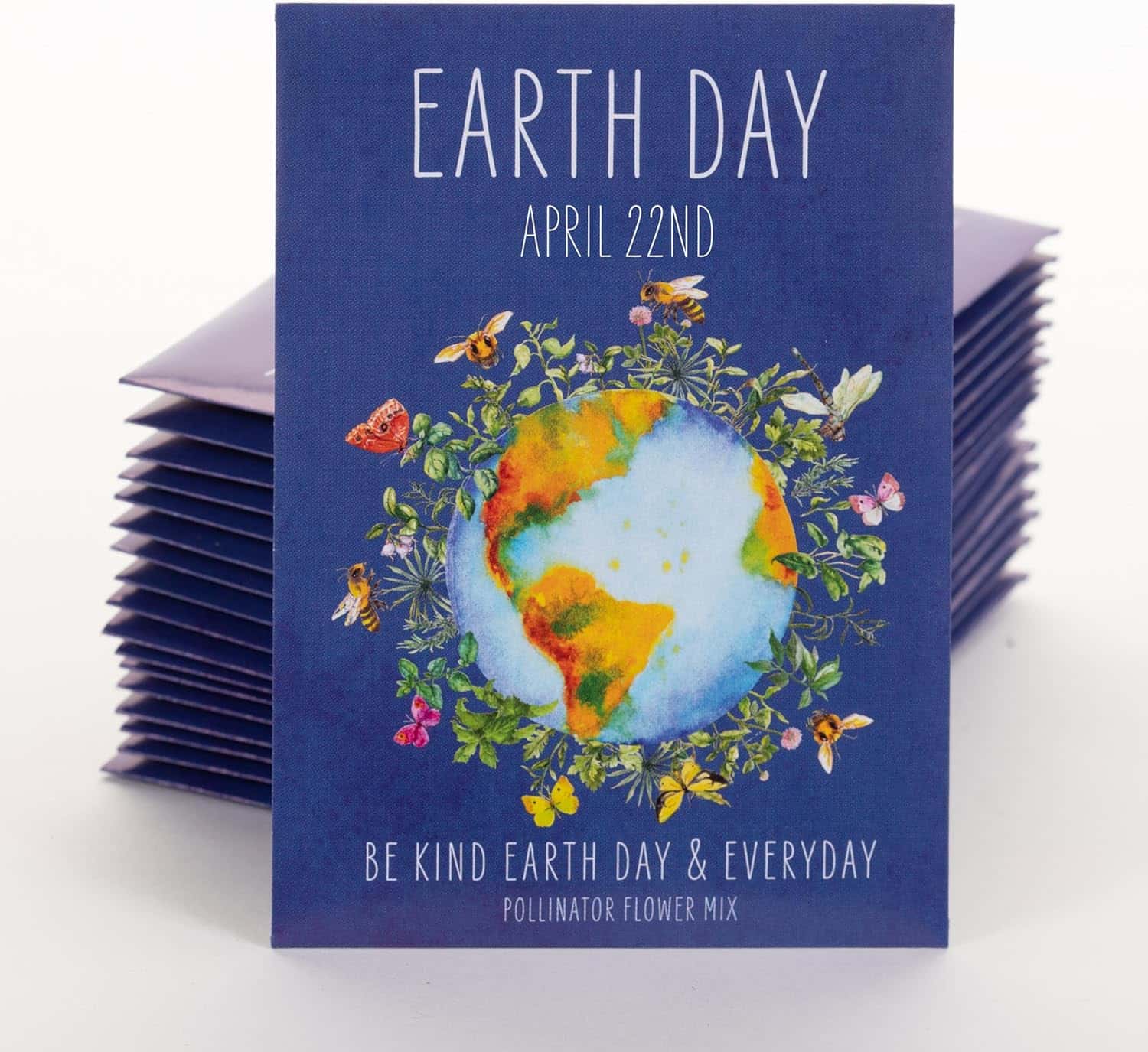 I’m thrilled to introduce you to our bestselling Earth Day seed packets! Just picture yourself handing out these beautifully illustrated packets, brimming with a delightful wildflower seed mix, perfect for pollinators like bees and butterflies. The vibrant design, featuring planet Earth adorned with flowers against a sea-blue backdrop, is sure to capture hearts and minds.