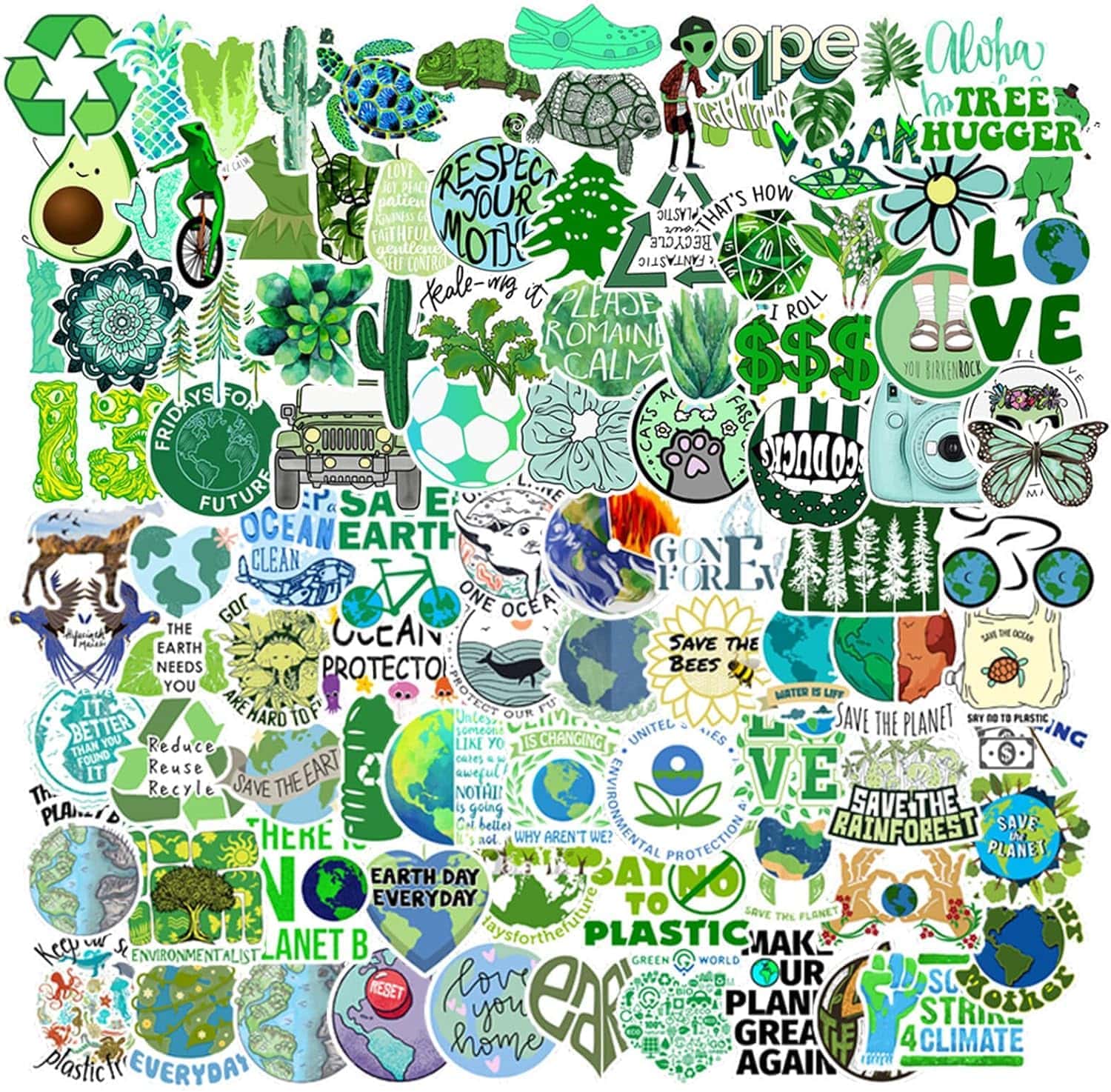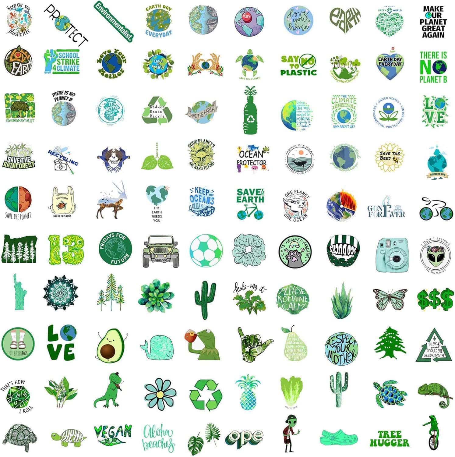 Eco Stickers 100pcs Earth Day Water Bottle Bike