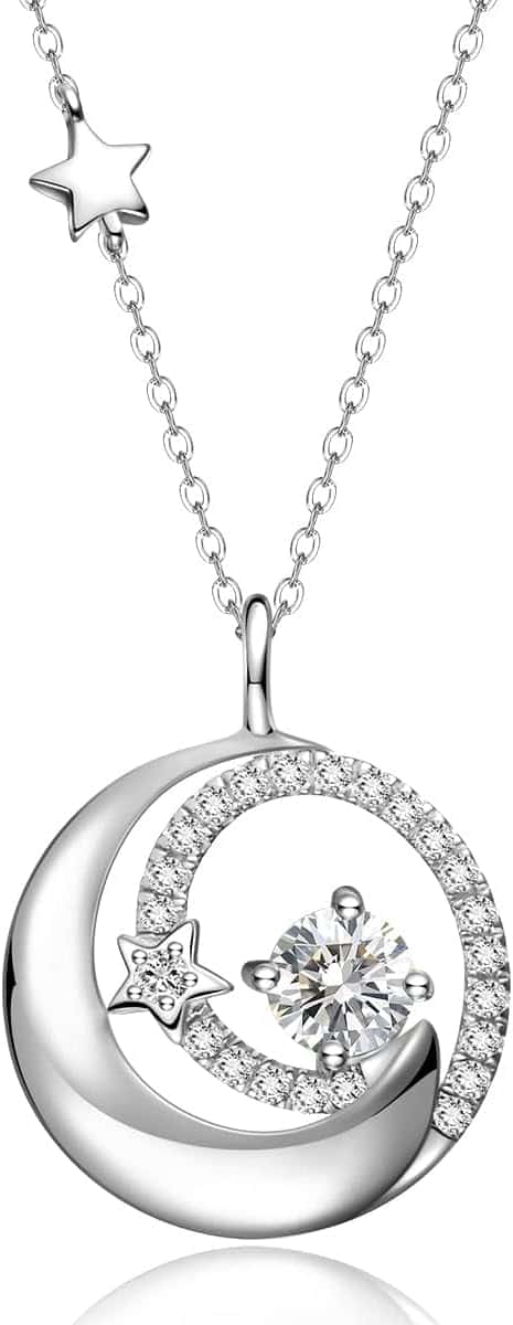 The FANCIME Birthstone Necklace is a beautiful and heartfelt gift, perfect for special women in your life, such as moms, wives, daughters, or friends. Made from safe, hypoallergenic 925 sterling silver, it features a stunning moon and star pendant with a simulated diamond, the April birthstone. Ideal for birthdays, anniversaries, Christmas, and other celebrations.