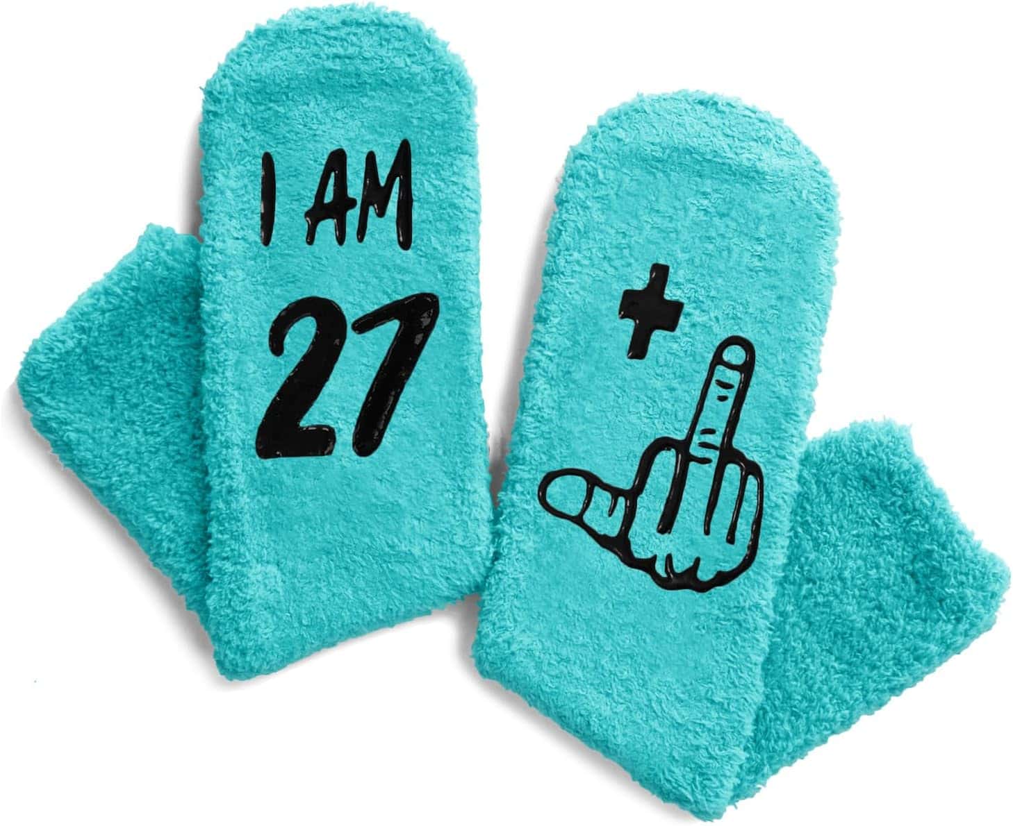 Imagine slipping your feet into the plushness of coral fleece every morning—the material offers both comfort and warmth, transforming a casual birthday gift into a cherished keepsake. The creativity in design says “I AM 27+1,” making these vibrant green socks not just functional but a personal declaration of age pride. The socks fit women’s shoe sizes 6-10, making them versatile enough for most amazing women in your life.