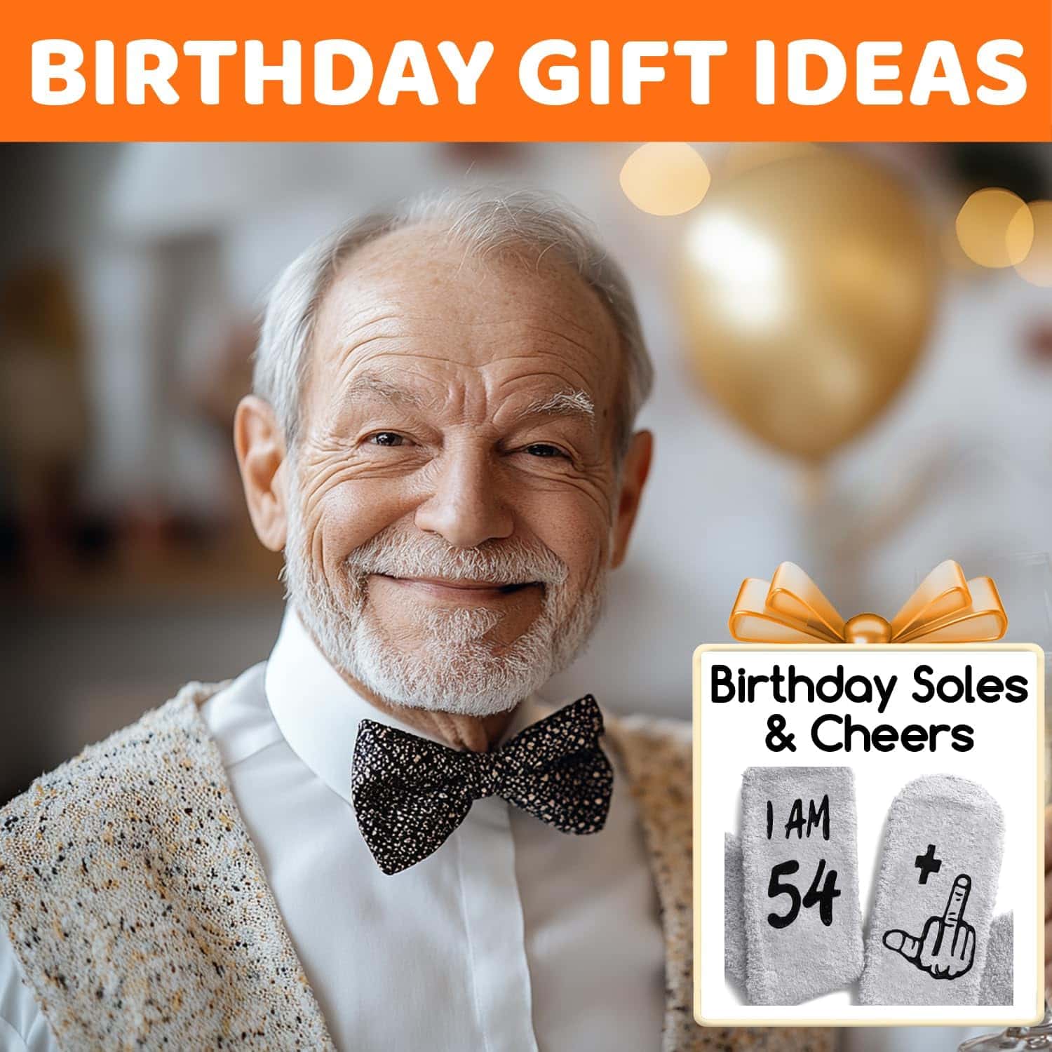 1. Unique 55th birthday gifts for men: plush coral fleece “I AM 54+” socks. 2. Perfect for dads, grandpas, husbands, and friends celebrating their 55th birthday. 3. Ideal for holidays: Birthday, Christmas, Father’s Day, or White Elephant gifting. 4. Socks fit men’s shoe sizes 6-10 with non-slip soles for safety. 5. Comes with DIY cupcake-style gift box packaging for a delightful presentation.