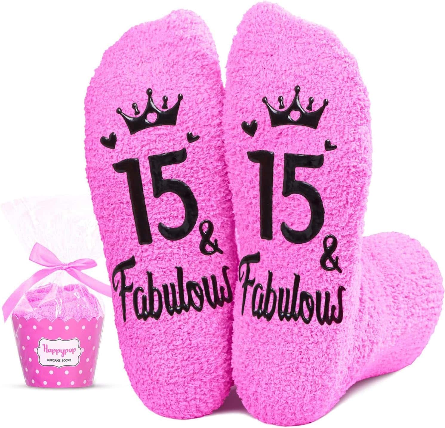 The HAPPYPOP 15th Birthday Gift Socks are a perfect choice for anyone celebrating their big 15th birthday. These soft and cozy socks, made from coral fleece, ensure comfort and warmth. With their unique cupcake packaging, they offer a fun and memorable unboxing experience. Ideal for sisters, daughters, or friends, these socks are a thoughtful and playful gift. Surprise a 15-year-old with a present that’s practical yet delightful, and sure to make their special day even brighter.
