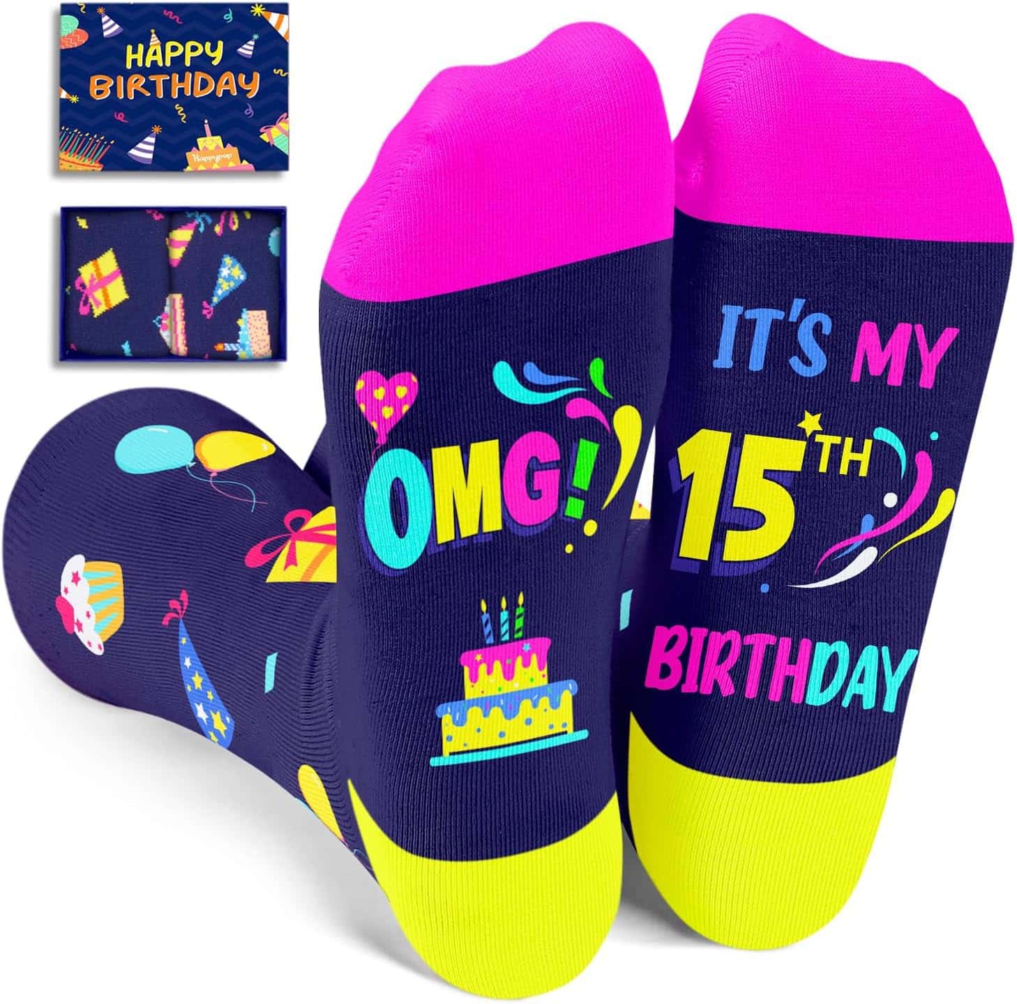HAPPYPOP 15th Birthday Gifts: Funny Socks for Teens