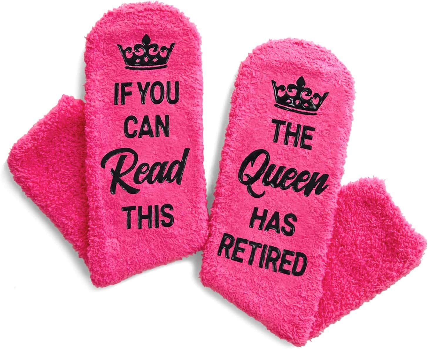 Imagine having socks that brighten your day and secure your step, no matter if you’re on wood, tile, or simply taking a leisurely stroll around the house. The sassy phrase on the soles, “IF YOU CAN READ THIS, THE QUEEN HAS RETIRED,” gives your feet a voice of playful confidence as they venture through retirement days. These socks transform the simple act of wearing them into a joy-filled experience, reflecting freedom and joy as you embrace leisure time.