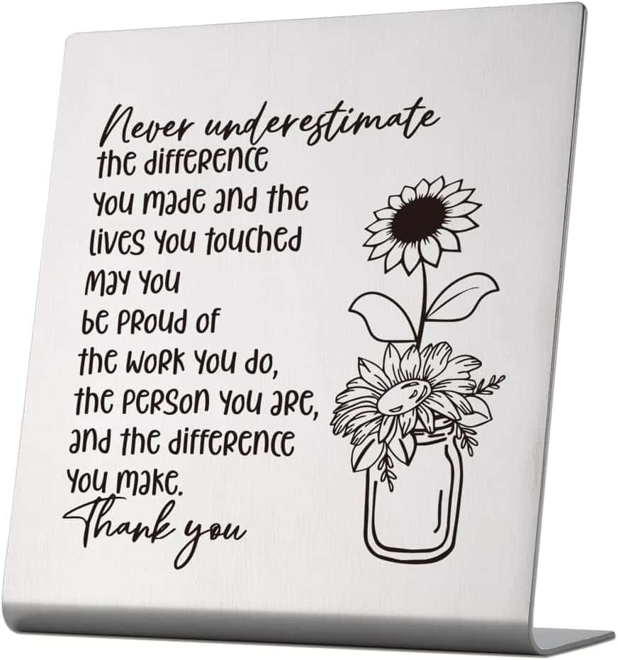 This inspirational desk sign is an ideal gift for coworkers, friends, teachers, or anyone retiring. Made from high-quality stainless steel, it’s durable and rust-resistant. Its motivational message serves as a daily encouragement, helping people overcome challenges and drive success. Perfect for any office or home workspace, it adds a personal touch to decor and suits people who appreciate thoughtful and uplifting reminders. Whether it’s for a colleague leaving the job or a friend who needs support, this charming decor piece brings positivity to any environment.