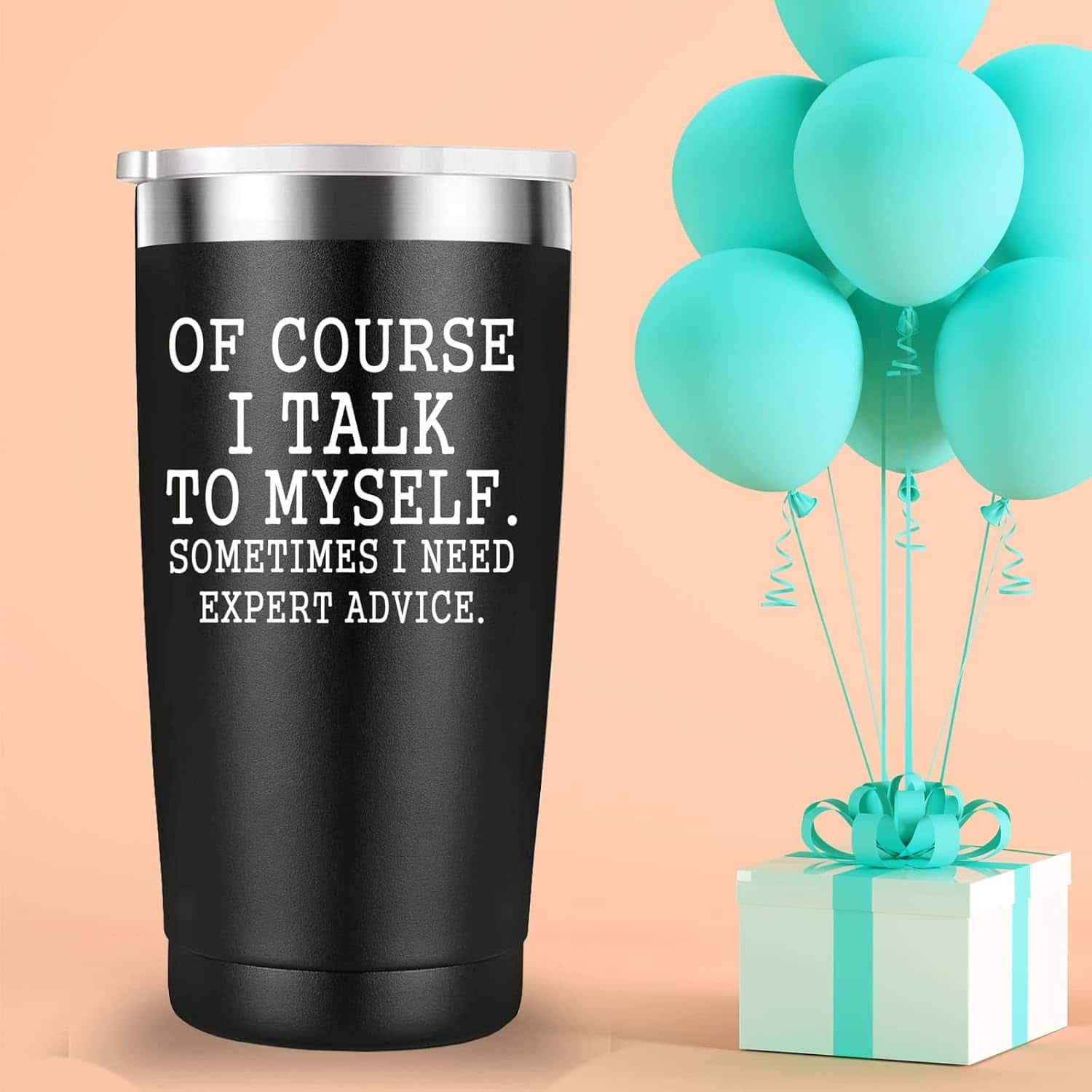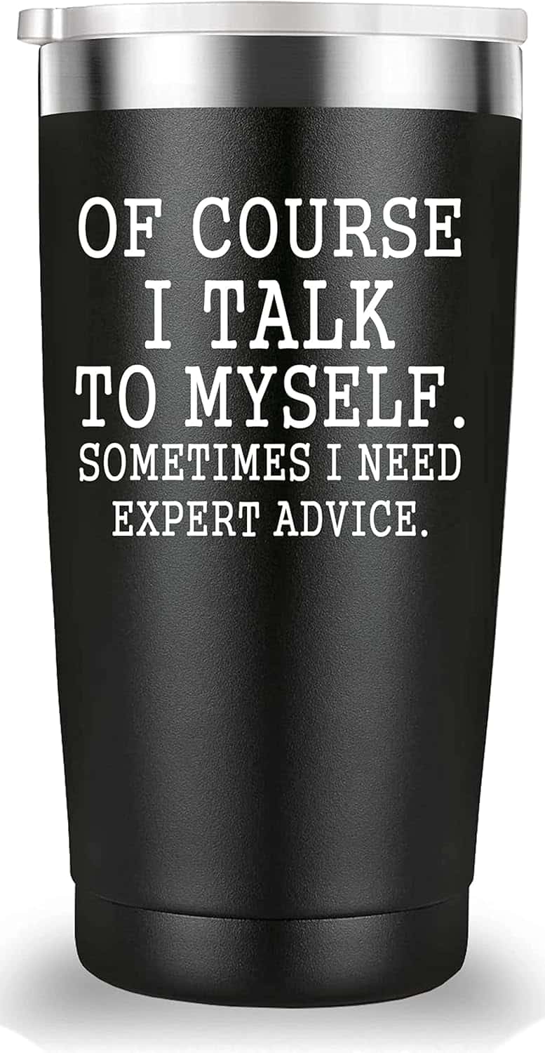 The Mamihlap Of Course I Talk To Myself Travel Mug Tumbler is a perfect gift for anyone who appreciates a good laugh. With its durable 18/8 stainless steel build and BPA-free lid, it ensures beverages stay hot or cold for hours. Ideal for the busy friend, coworker, or boss, this tumbler suits both indoor and outdoor activities, making it a thoughtful choice for Christmas, birthdays, or any occasion.