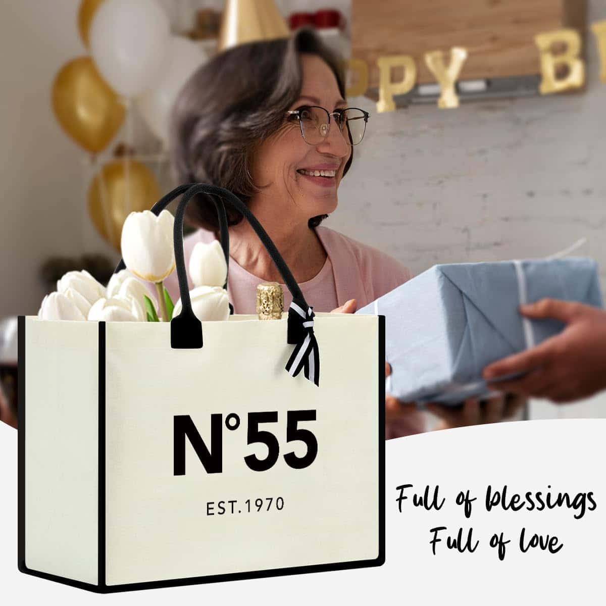 This stylish and durable tote bag is a perfect gift for women of all ages, especially for milestone birthdays like the 30th, 40th, 50th, 60th, and beyond. With its large capacity and waterproof interior, it’s ideal for beach trips, travel, and everyday use. It’s perfect for moms, wives, sisters, and friends who appreciate practical yet beautiful accessories.