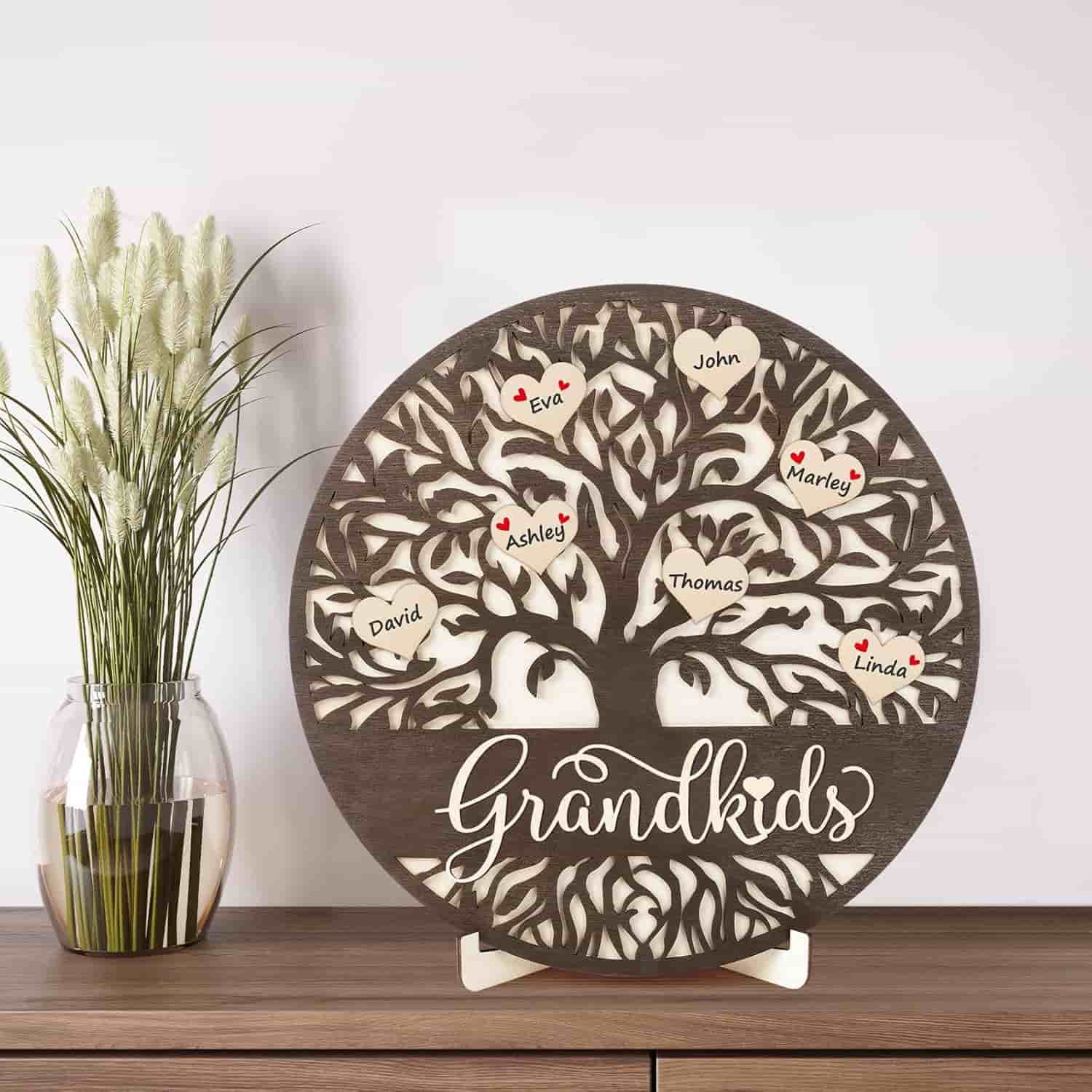 Oh, the joy of bringing smiles to grandparents’ faces with a gift that functions as an emblem of love! This Family Tree plaque is not just a decorative piece; it’s a daily reminder of familial bonds. As the grandkids’ names delicately adorn the plaque, it invokes sweet emotions with every glance. Unlike any conventional décor, this unique artifact transforms the living room, bedroom, or desk into a gallery of cherished memories. Imagine the delight on grandma and grandpa’s faces as they lovingly reminisce about each grandchild showcased on their bespoke family tree.