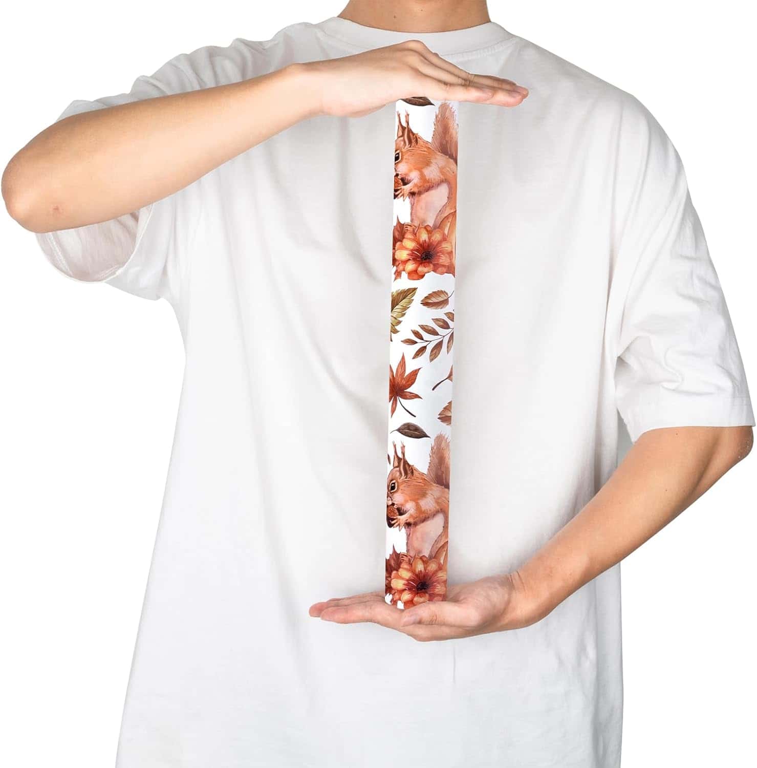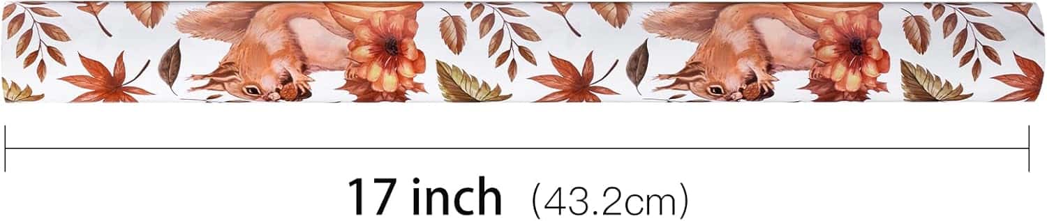Imagine a fall-themed celebration where your gifts aren’t just wrapped, they’re transformed into an extraordinary autumn experience! The vibrant squirrel and leaves design not only captivates the eye but captures the essence of the autumn season. There’s no crumpled paper here – each roll is crisply smooth and utterly pristine, perfectly sized at 17 inches by 32.8 feet, making it an Autumn necessity. With high-quality coated paper that resists tearing, your gifts are destined to shine and delight.