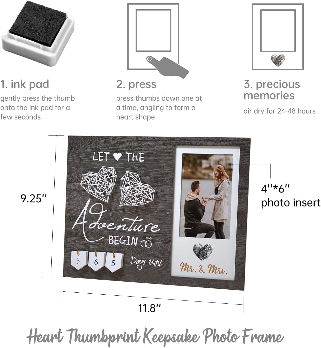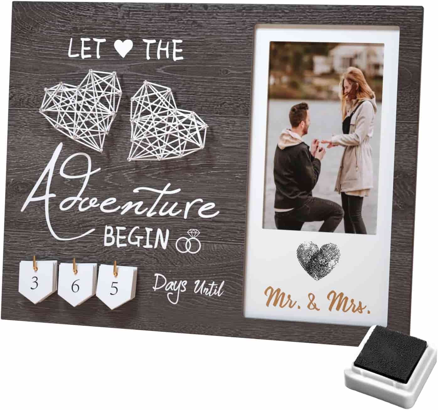 Experience the Magic of the Wedding Countdown Heart Thumbprint Engagement Picture Frame