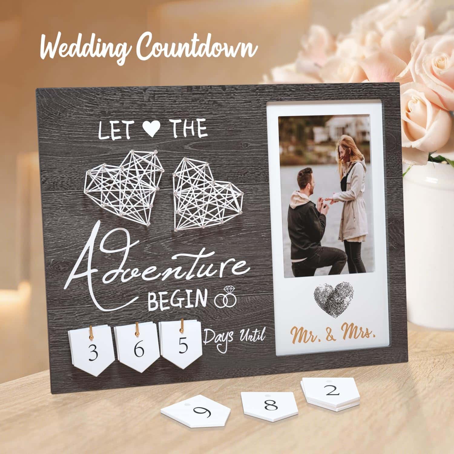Our photo frame offers unmatchable emotional value by blending the physical act of creating together with the countdown to your wedding day, ensuring your journey is both visually captivating and emotionally rewarding. It’s not just an ornament; it’s a heartwarming reminder of shared dreams and aspirations.