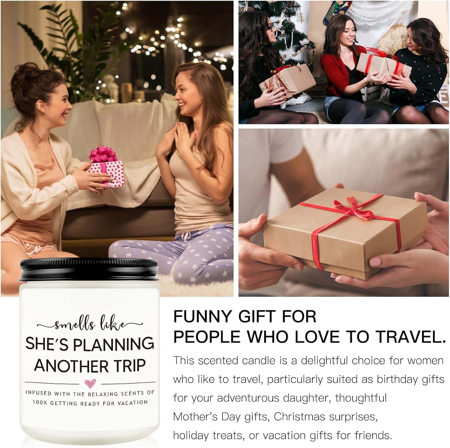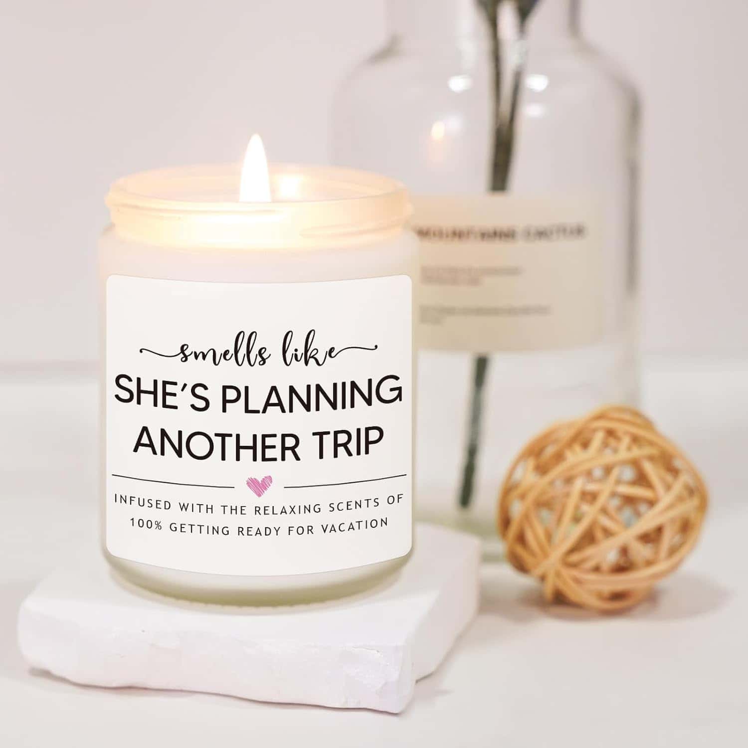 From tangible perks like its eco-friendliness and long-lasting burn time to emotional benefits like a sense of serenity and relaxation, this travel candle offers users the gift of moments. Its charming and humorous message, “Smells like she’s planning another trip,” makes it a conversational piece and keepsake, sharing laughter and love long after the candle is burnt out. This makes it an ideal gift choice for travel enthusiasts brimming with wanderlust, adding a personal touch to their lives.
